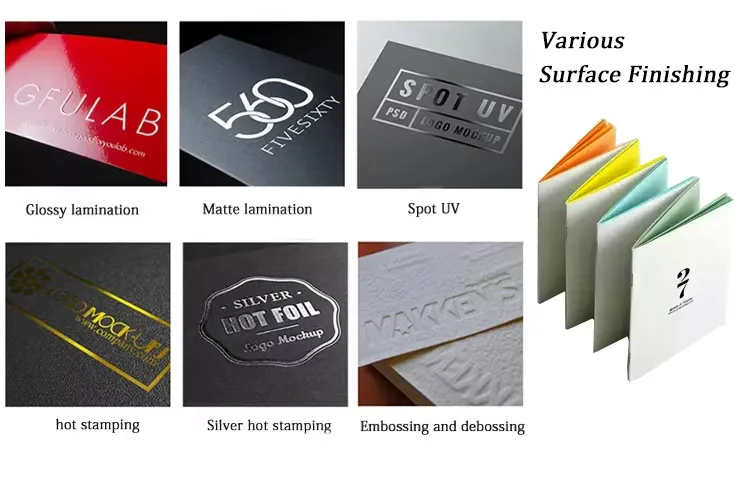 UV coating, Spot varnishing, Embossing, Gloss/matt , Foil Stamping, Die cutting, etc. |